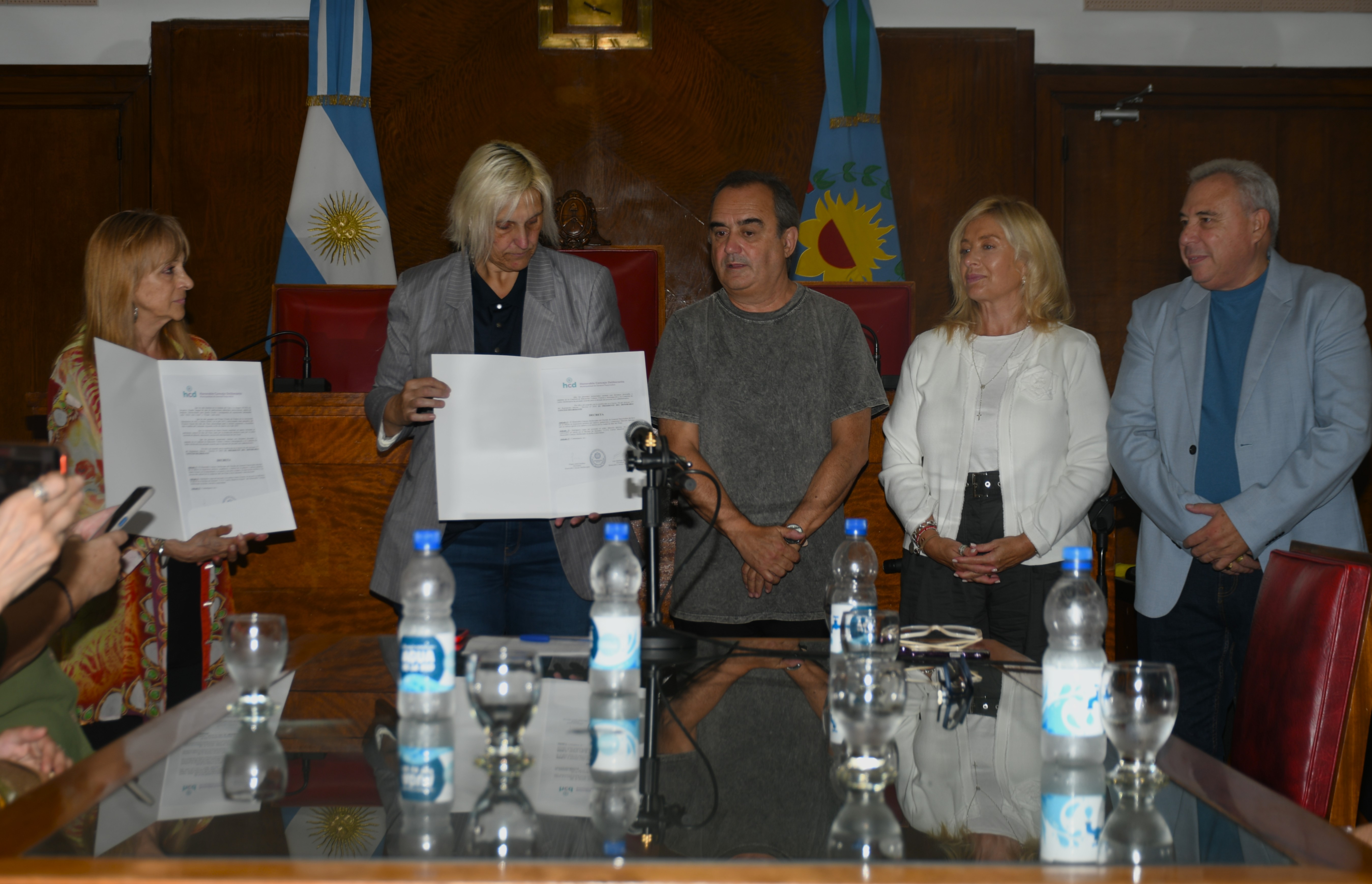 El acto se realizó en el recinto, a instancias de la concejal Vilma Baragiola. Asistieron Ariel Martínez Bordaisco, Marcelo Cardoso y Gaby Azcoitía, además de familiares, amigos y colegas de ambos artistas.