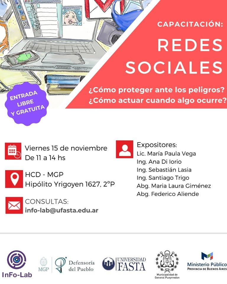 Organizada y auspiciada por el Laboratorio de Investigación y Desarrollo de Tecnología en Informática Forense (InFo-Lab), la Defensoría del Pueblo de General Pueyrredon, la Universidad FASTA, el Ministerio Público de la provincia de Buenos Aires y la Municipalidad, se desarrolló la capacitación sobre “Redes Sociales: ¿Cómo proteger ante los peligros? ¿Cómo actuar cuando algo ocurre?”. La jornada fue abierta al público en general.