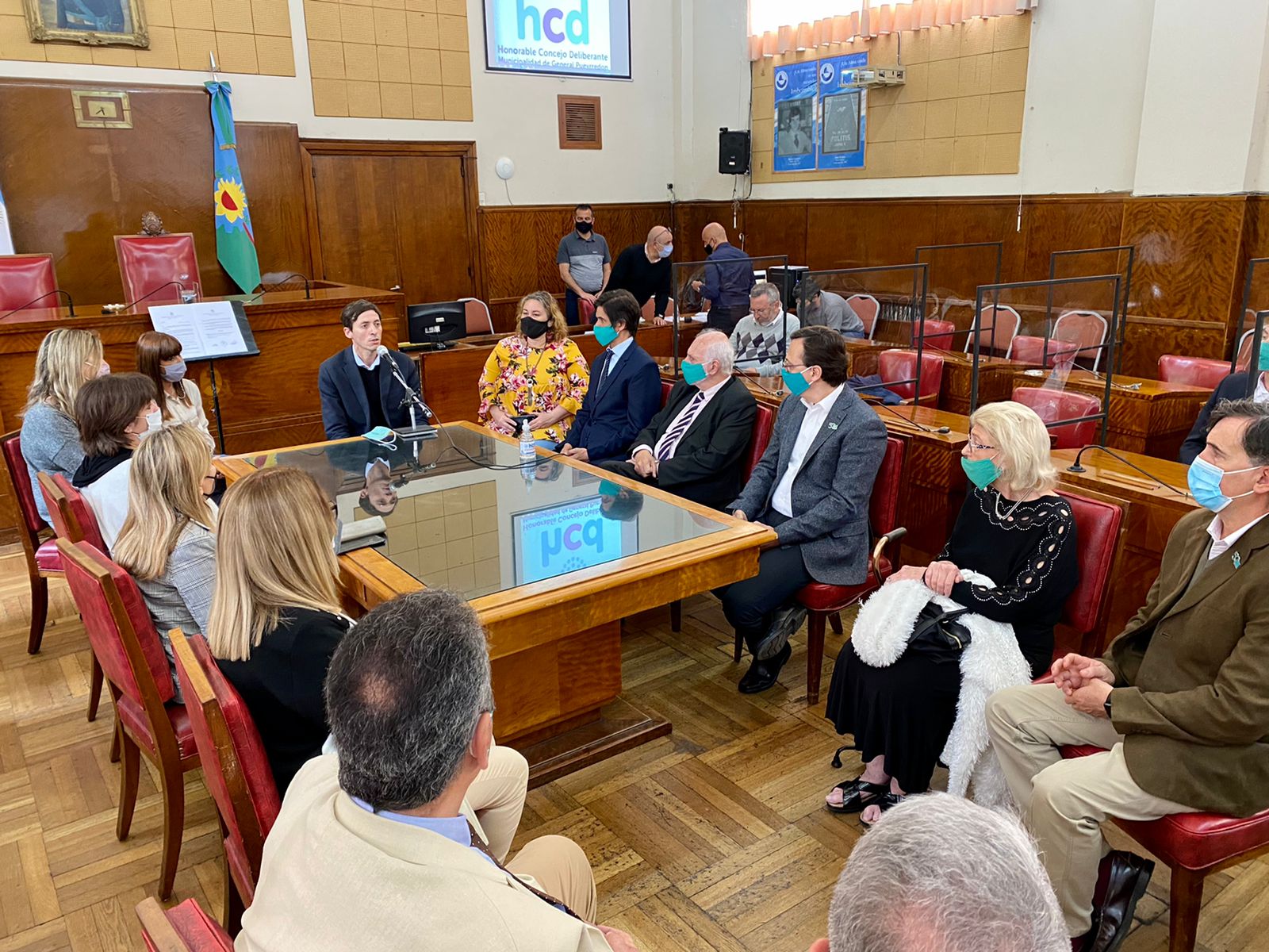 Estuvieron en el recinto la Secretaria del Cuerpo, Natalia Poleggio; los concejales Marcos Gutiérrez y Verónica Lagos (FdT); Liliana Gonzalorena (CC ARI MdP); Cristina Coria (UCR); y Paula Mantero (AM).