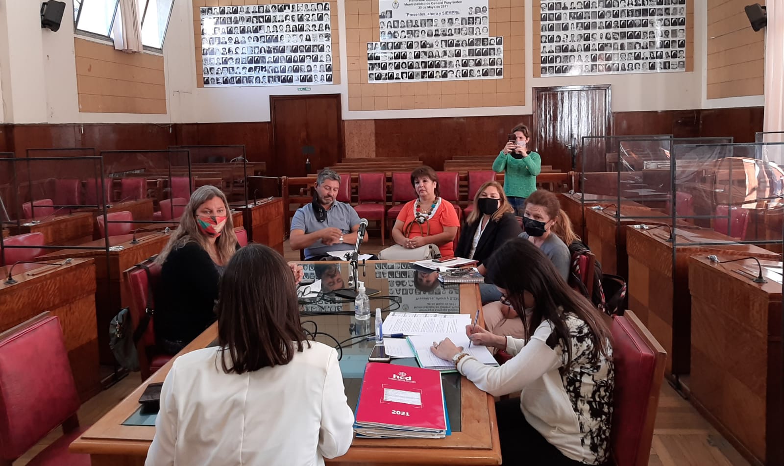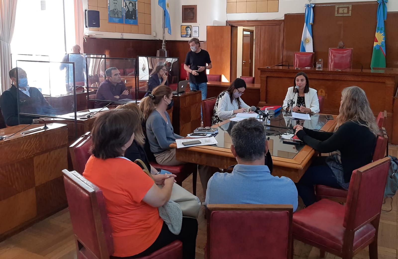 El encuentro tuvo lugar en el recinto de sesiones, con la aplicación del protocolo de actividades presenciales y contó con la presencia, en calidad de invitados, de miembros de la Mesa Interinstitucional contra la Trata, entre los que estuvieron Cristina Coria (CMC), Pablo Farías y Yamila Rodríguez Zavala, Directora de la Quinta Región del Ministerio de Mujeres, Políticas de Género y Diversidad Sexual de la Provincia.