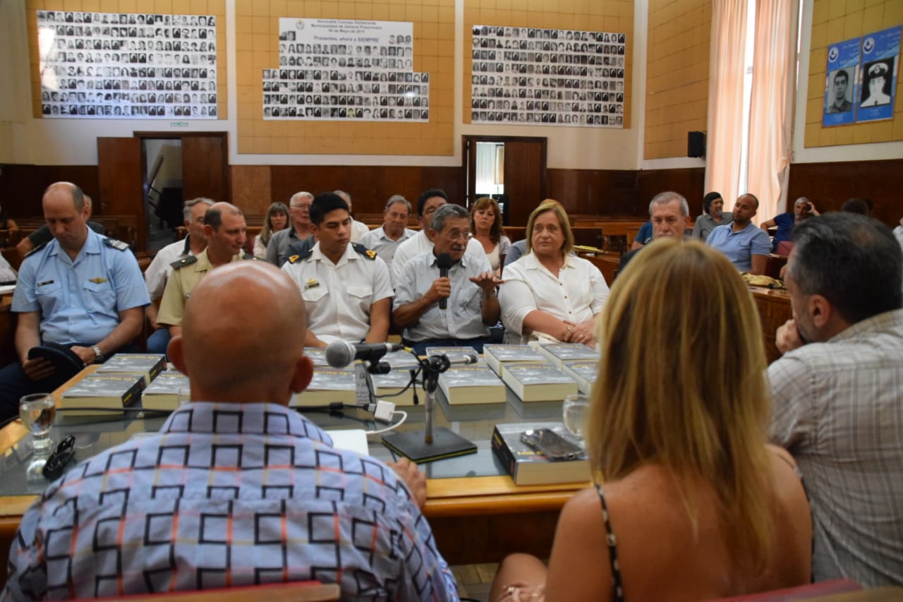 En una emotiva reunión llevada a cabo en el recinto de sesiones del Honorable Concejo Deliberante de General Pueyrredon, se realizó la presentación del libro “Los Halcones de Bomb Alley –Donde el honor ponía a prueba a los sueños-“, novela histórica basada en hechos reales, escrita y producida por el marplatense Mario Fernando Benedetti.