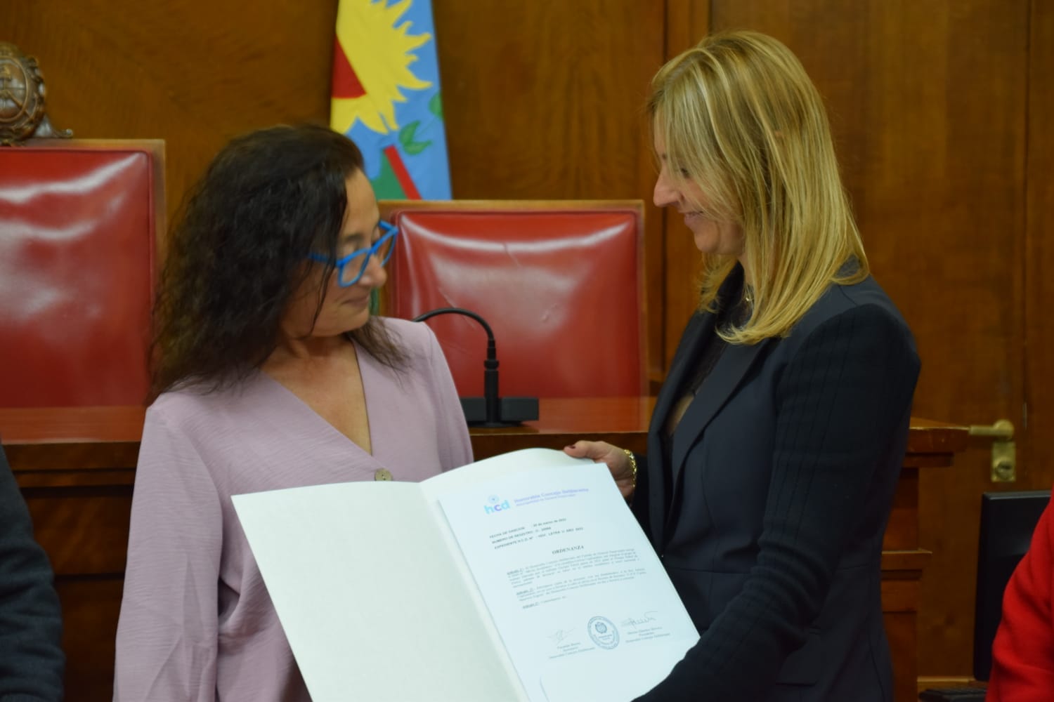 En una emotiva ceremonia, Marina Sánchez Herrero, Presidenta del Honorable Concejo Deliberante de General Pueyrredon, realizó la entrega del título al Mérito Académico, el mayor reconocimiento que se otorga desde el Concejo, a la científica marplatense Leticia Cugliandolo. Estuvieron presentes los concejales de la UCR, Marianela Romero y Daniel Núñez, representantes de la Secretaria de Educación Municipal, autoridades de la Universidad Nacional de Mar del Plata, de la UTN, familiares y amigos de la homenajeada.