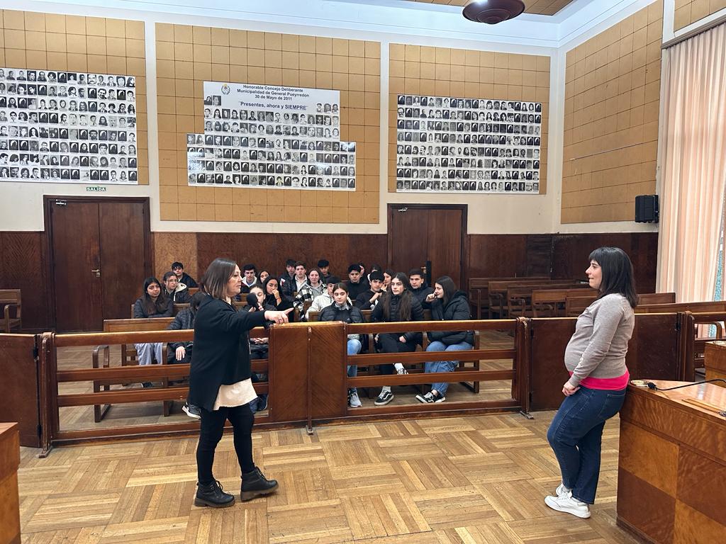 En esta ocasión, docentes y alumnos de la Escuela de Educación Secundaria Nº 25 “Chacra de Perdriel” pudieron conocer el recinto de sesiones, donde la concejal Sol de la Torre (Unión por la Patria) y por Laura Giulietti, directora de Actas, Referencia Legislativa y Digesto, los instruyeron sobre los mecanismos administrativos internos, el funcionamiento del área de comisiones y sobre las distintas sesiones que se desarrollan a lo largo del año legislativo.