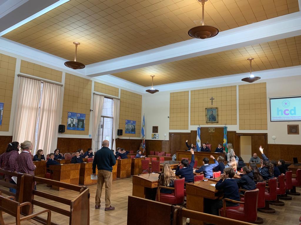 Los alumnos, en efecto, también llevaron a cabo un simulacro de sesión en el marco de la dinámica de role play, ocupando justamente roles activos que dieron forma a las distintas bancadas, oficialista y opositoras, así como también en lo que respecta a la mesa directiva del Concejo.