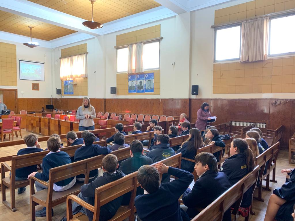 Alumnos de 1º año del Holy Trinity College asistieron hoy, lunes 28 de agosto, al recinto de sesiones del Honorable Concejo Deliberante de General Pueyrredon, en el marco del ciclo de Visitas de Escuelas al Concejo.