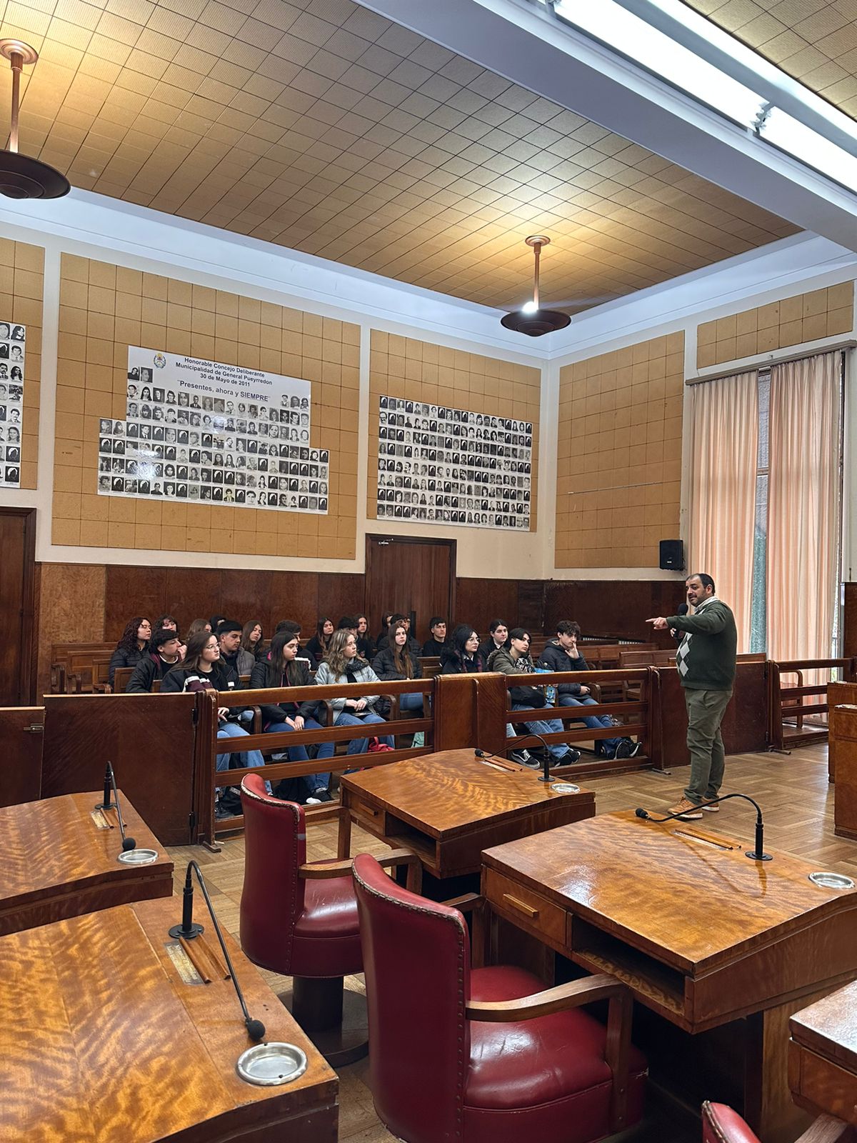 En el recinto de sesiones fueron recibidos por el concejal Daniel Núñez (UCR), y por Ángel Faguada, de la Dirección de Actas.