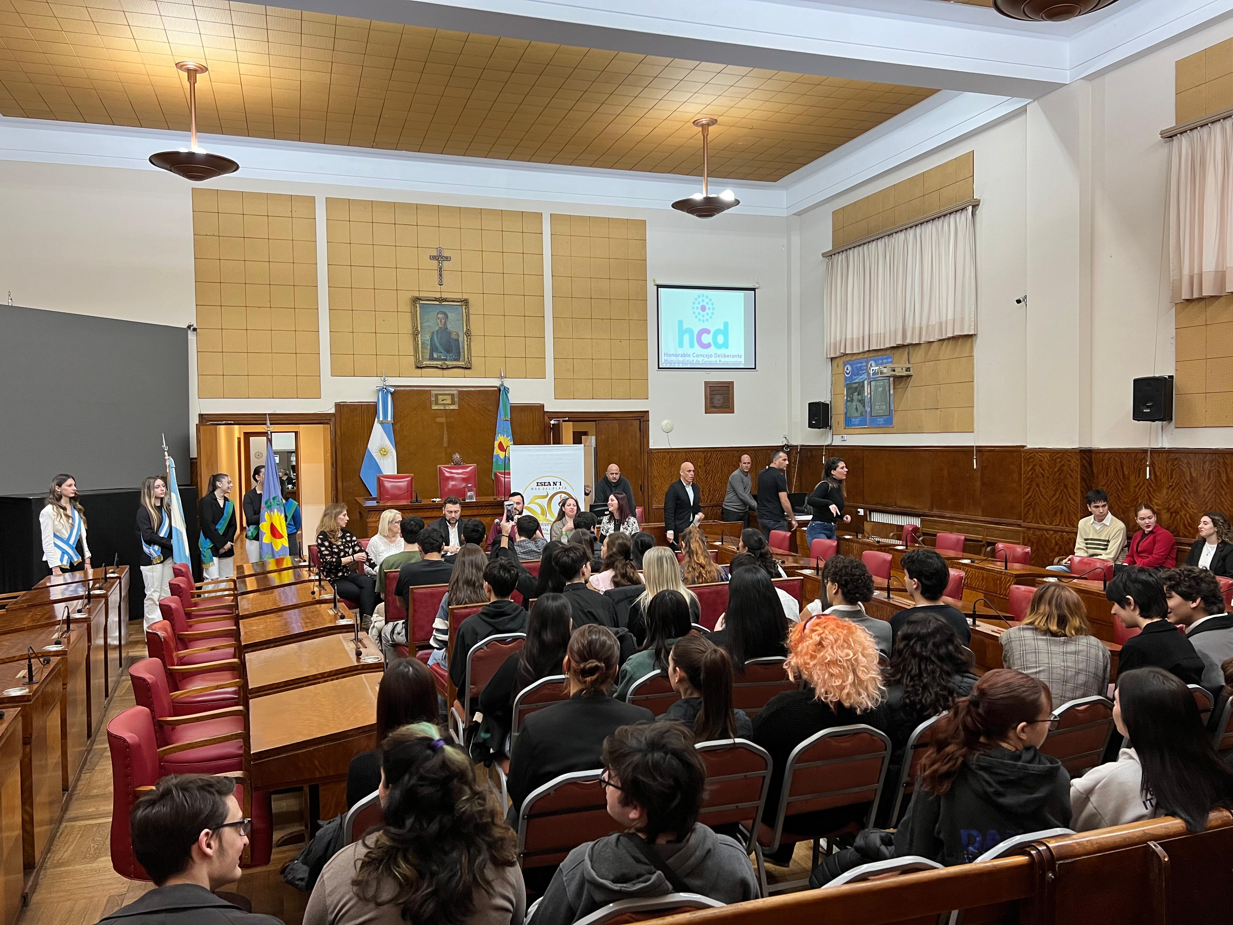 El acto se desarrolló en el recinto de sesiones, presidido por Beneito. Asistieron autoridades, directivos, docentes y alumnos de la institución educativa.