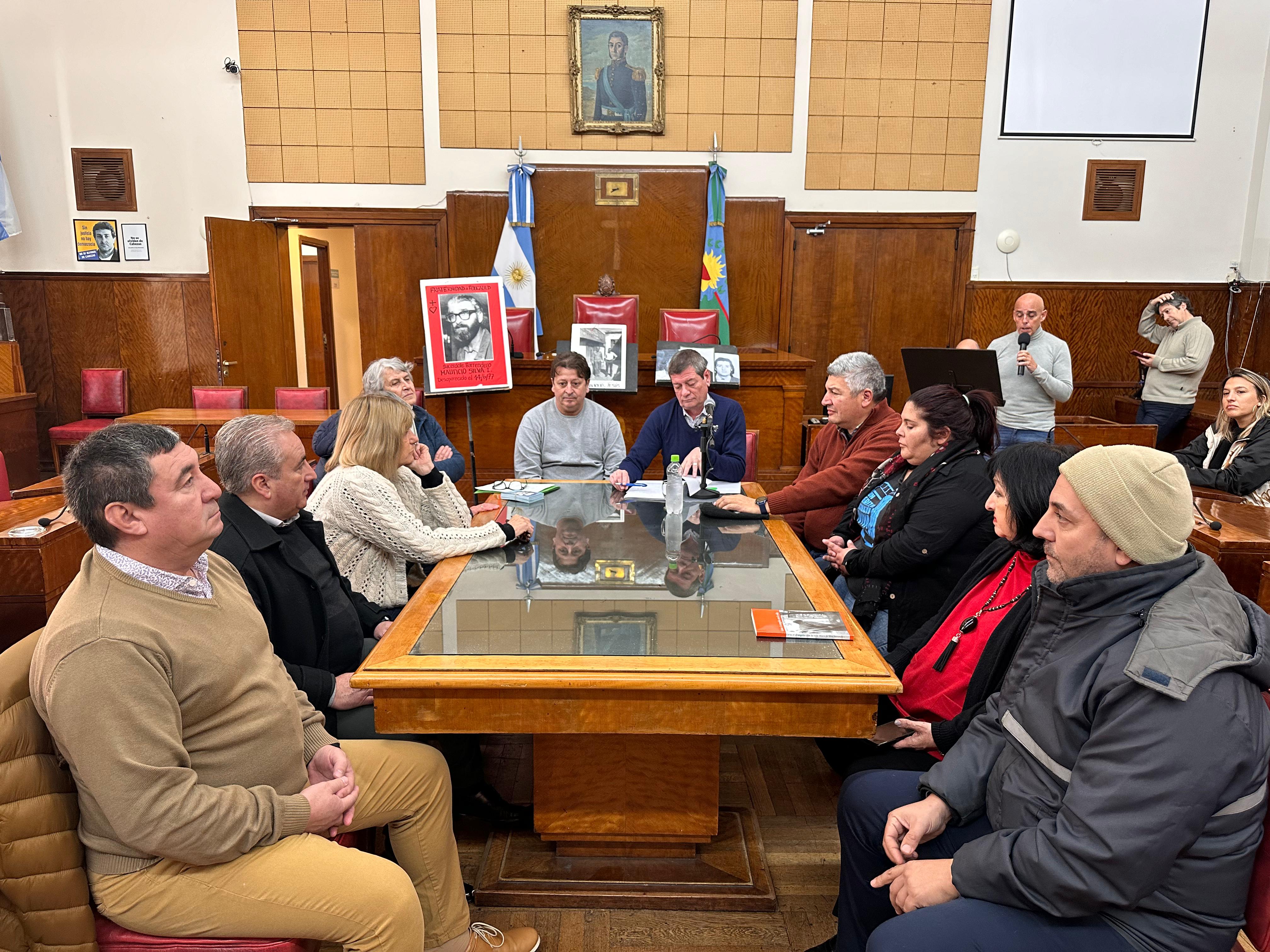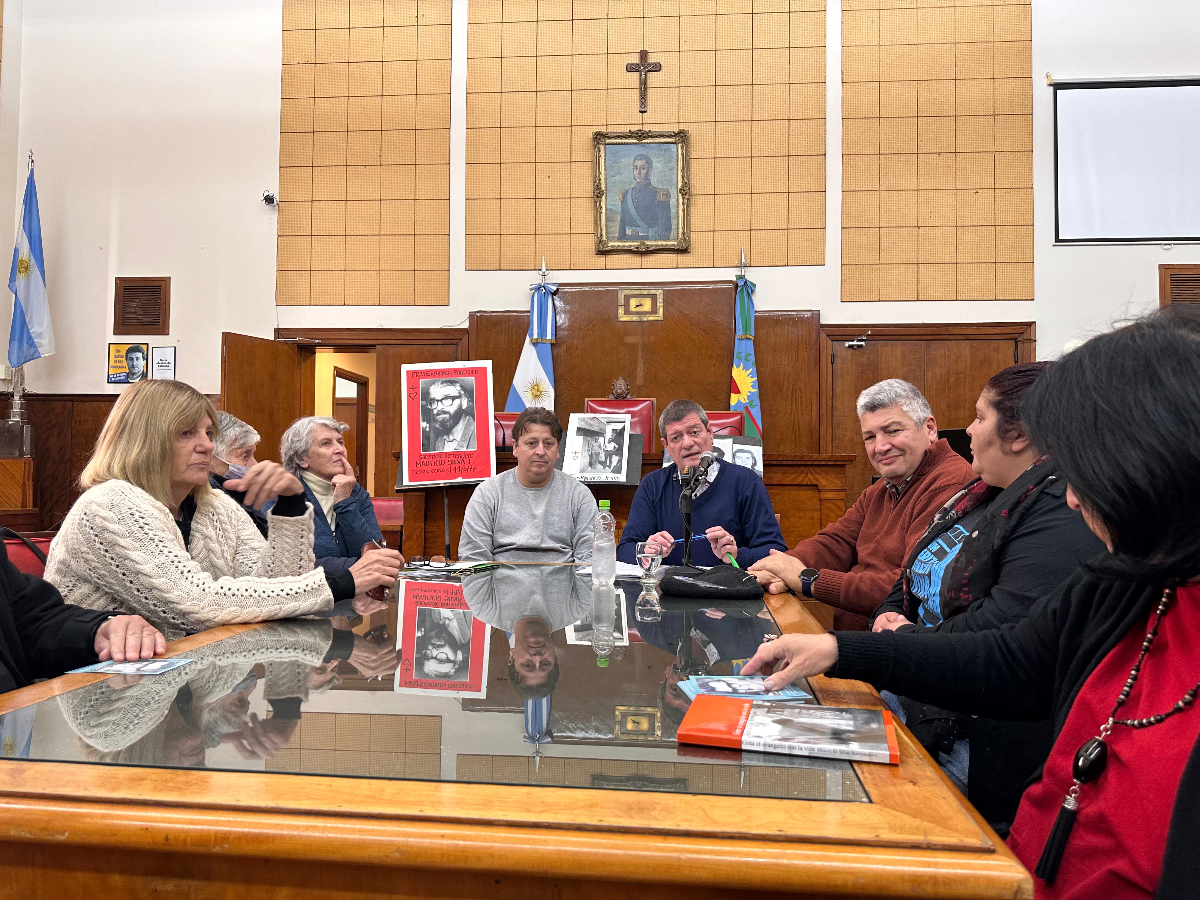 Guglielmotti, en su rol de anfitrión, dio la bienvenida a los presentes: “Muy buenos días, bienvenidos a La Casa del Pueblo, a este recinto. Quiero agradecer a Roberto Gandolfi, que me ha pasado la posta de este hermoso homenaje. La intención de la ley que respalda este acto, impulsada por Adela Segarra, es recuperar la memoria de quien fue Mauricio Silva, un cura barrendero, un sacerdote que barría las calles de la ciudad de Buenos Aires. Todos sabemos quienes fueron blanco de la dictadura, hubo 80 curas desaparecidos. Él fue semilla que cayó en tierra fértil, dio sus frutos y hoy está presente junto a ustedes. Quisiera destacar el trabajo gremial que hizo Mauricio. En esa época se decidió privatizar el servicio, lo que generó el comienzo de una resistencia por parte de los trabajadores, más de 400 representados por él. Hubo dos desapariciones previas a la de Mauricio, que tenía 51 años. Hoy estamos homenajeando su compromiso de lucha, su caminar por los más pobres”.