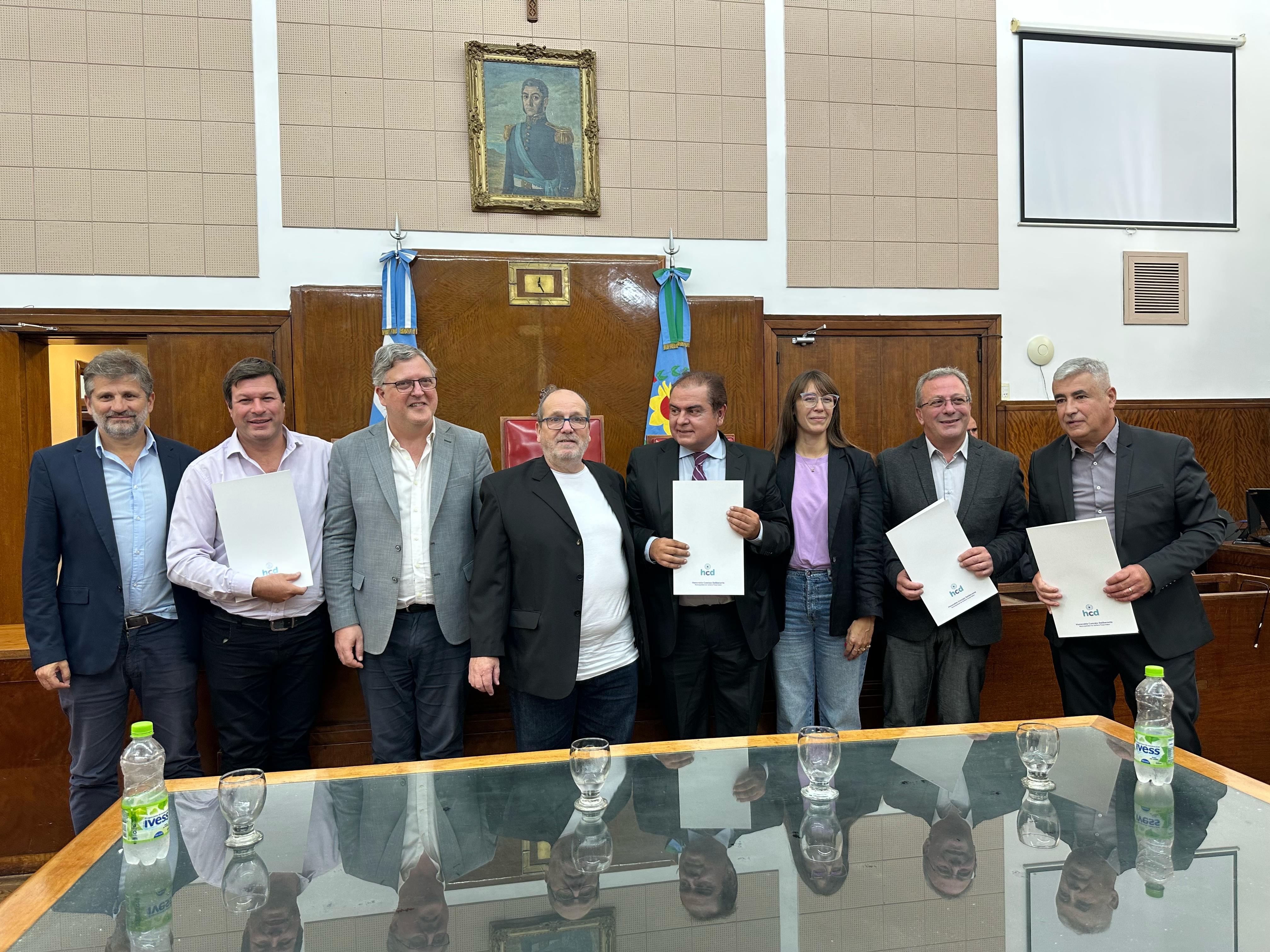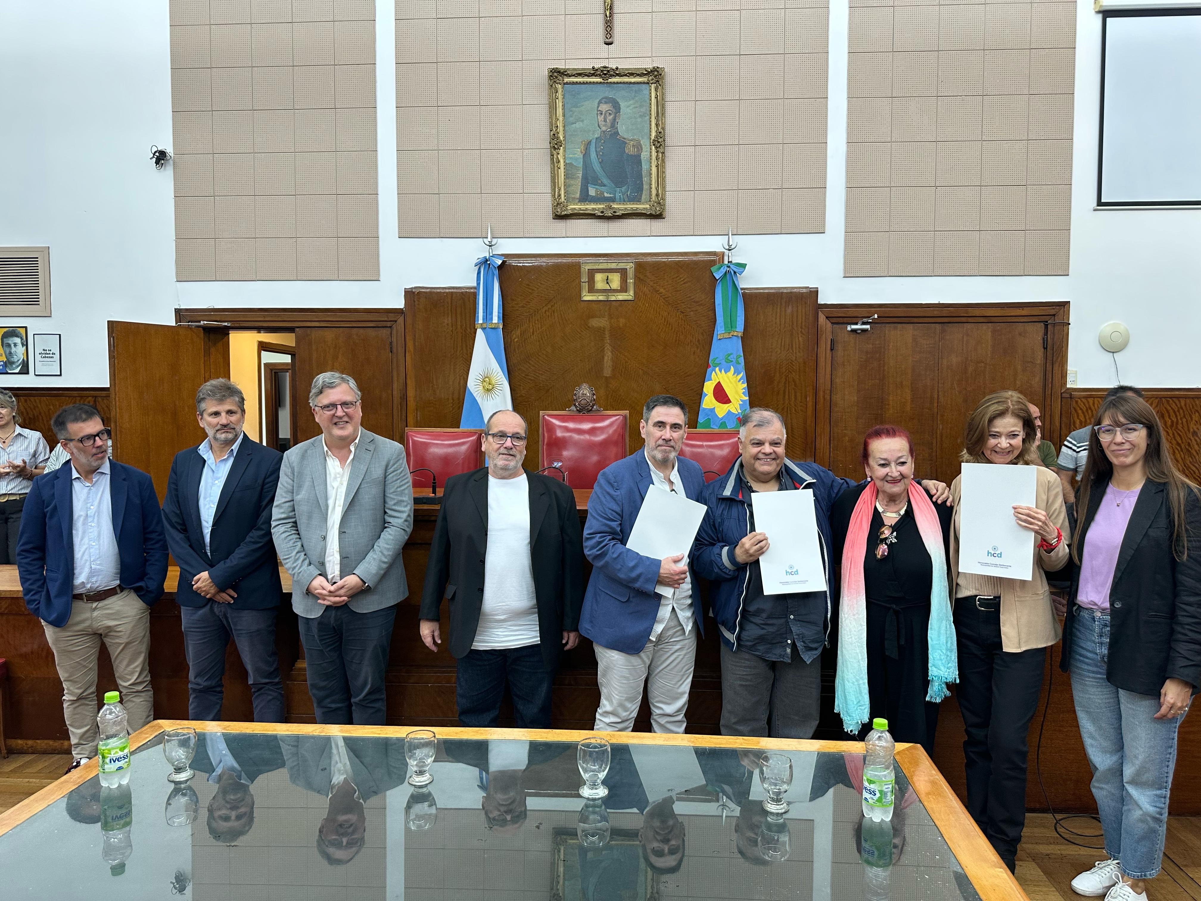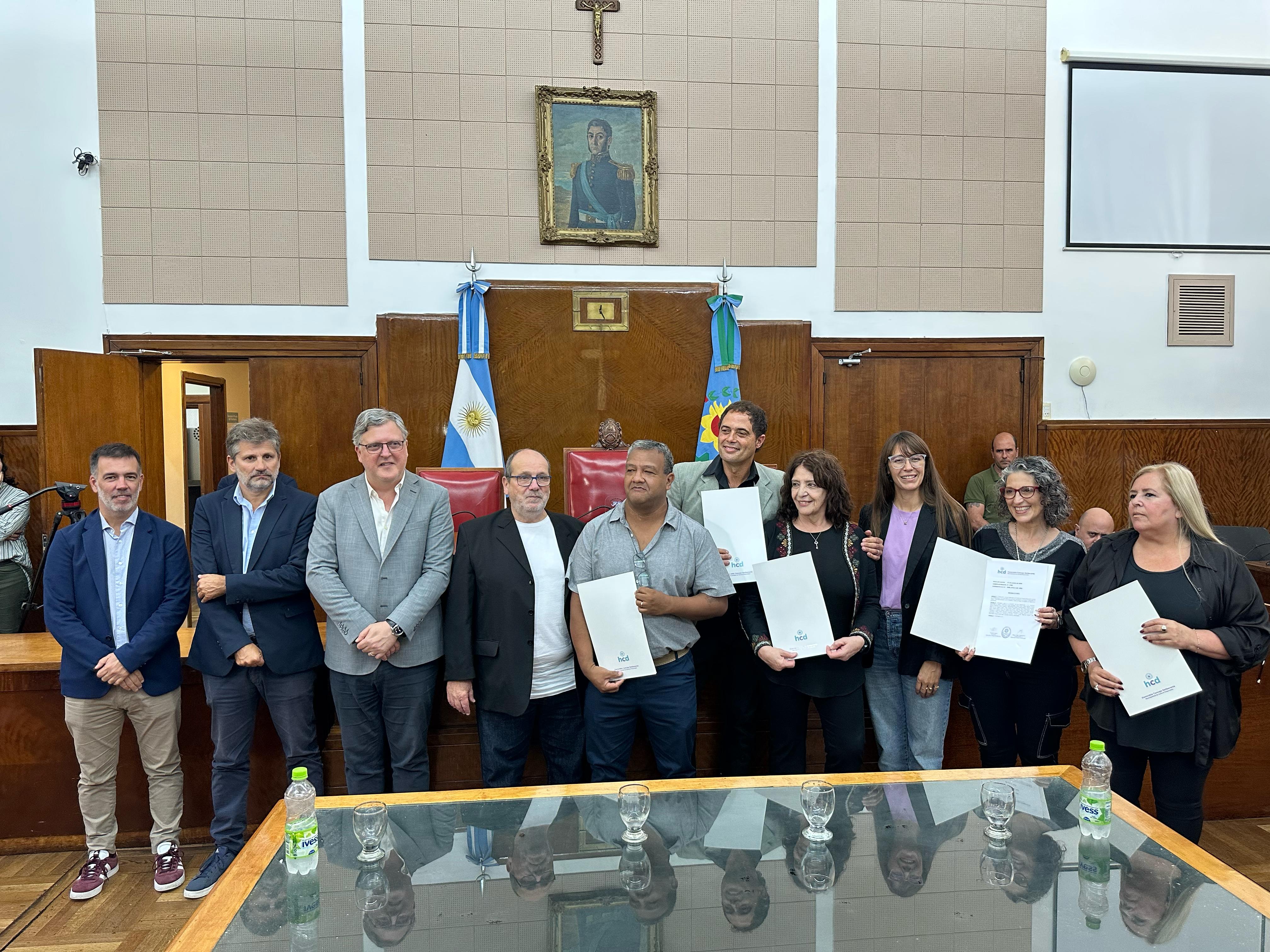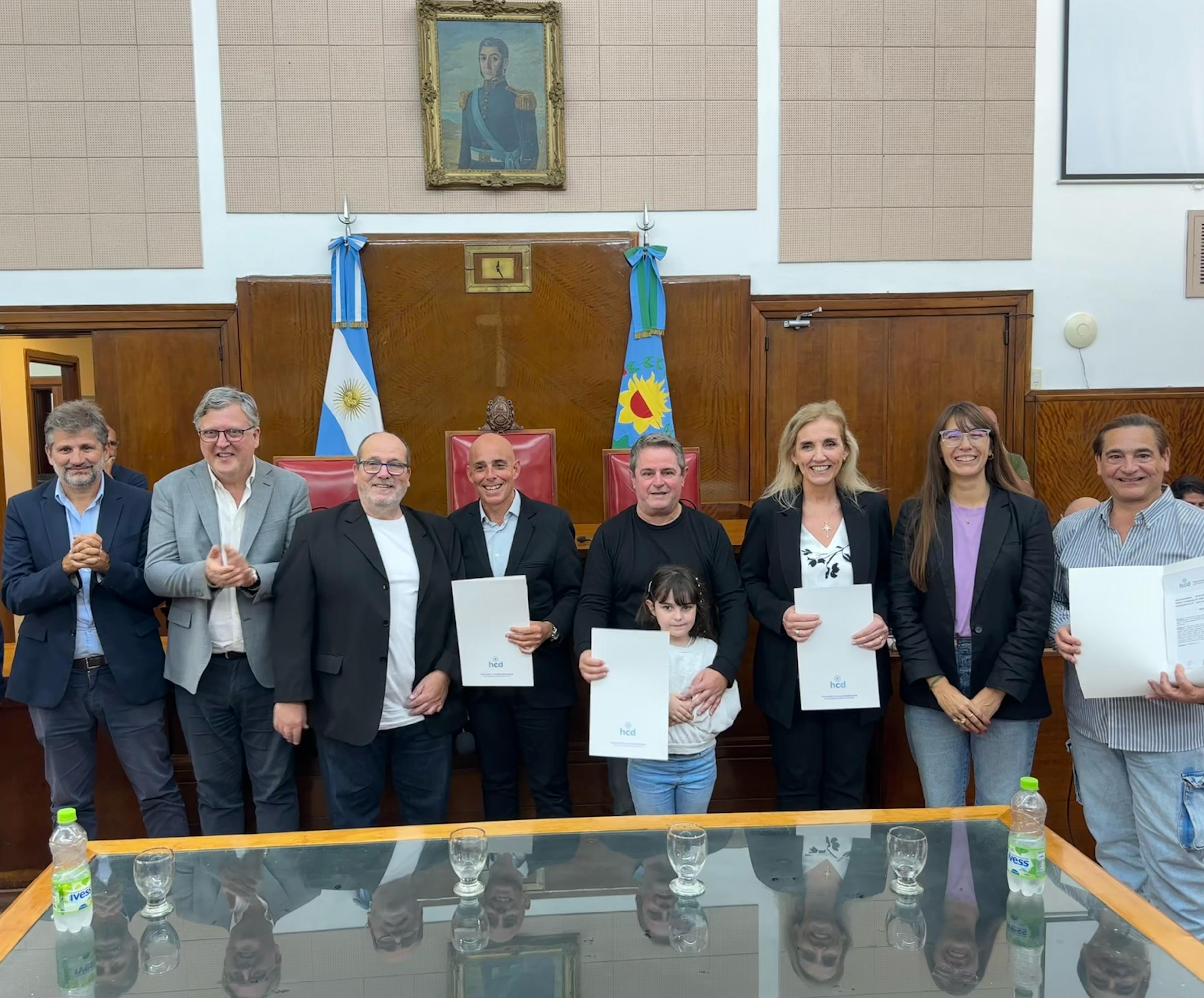 La propuesta de reconocimiento fue impulsada por Gustavo Pujato, que estuvo presente y dio las palabras de bienvenida. También asistieron Marianela Romero, Ariel Ciano y Daniel Núñez. Y en representación del intendente Guillermo Montenegro, el secretario de Educación, Fernando Rizzi.